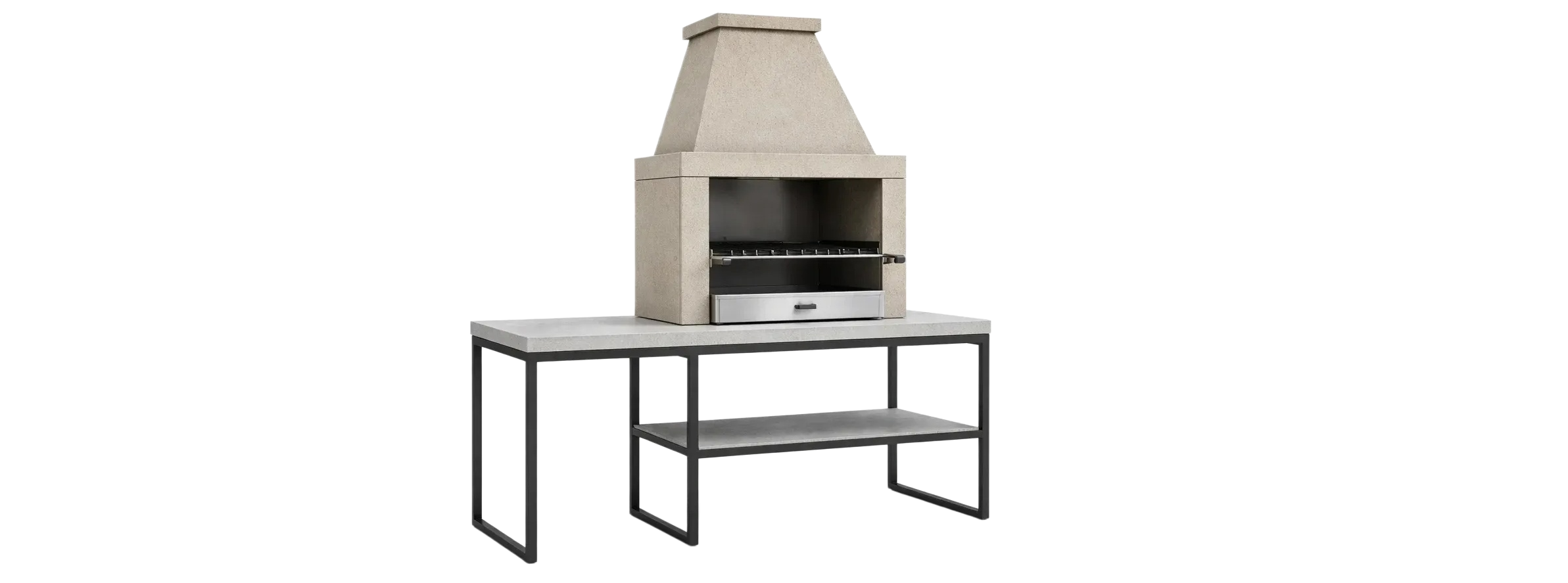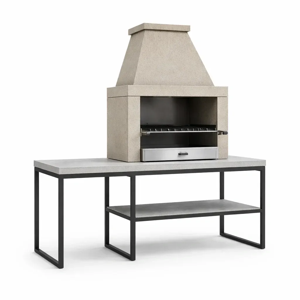 Barbecue in cemento e metallo grigio