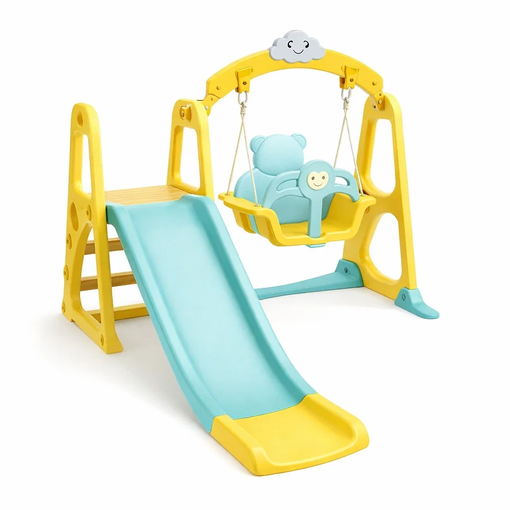 Attrezzatura da gioco per bambini con scivolo e altalena in polietilene giallo e azzurro