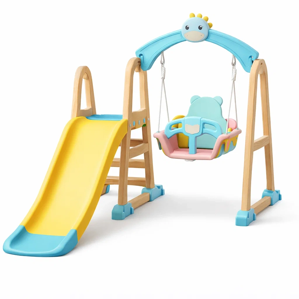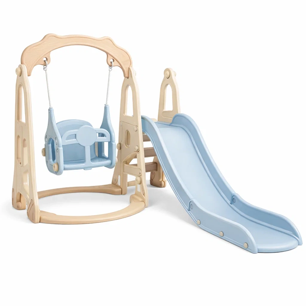 Attrezzatura da gioco per bambini con scivolo e altalena in plastica PP blu e beige