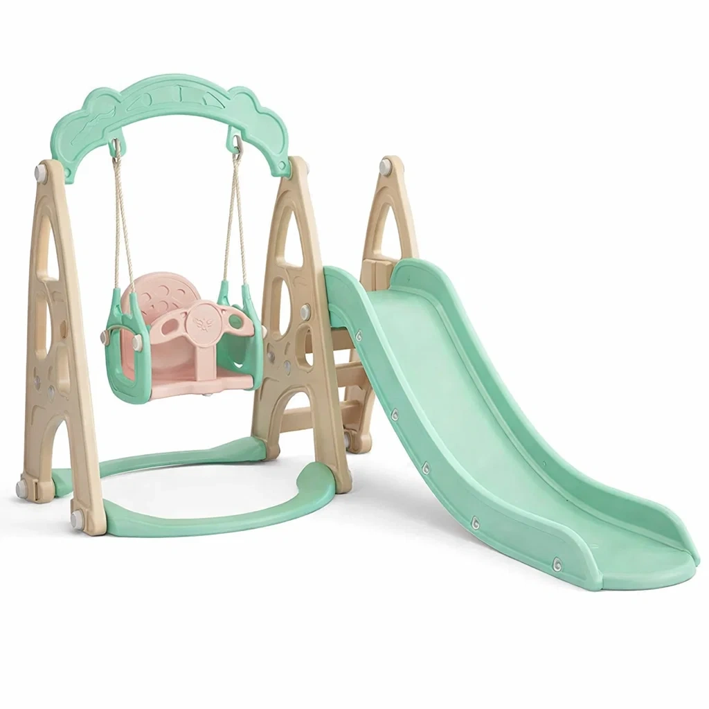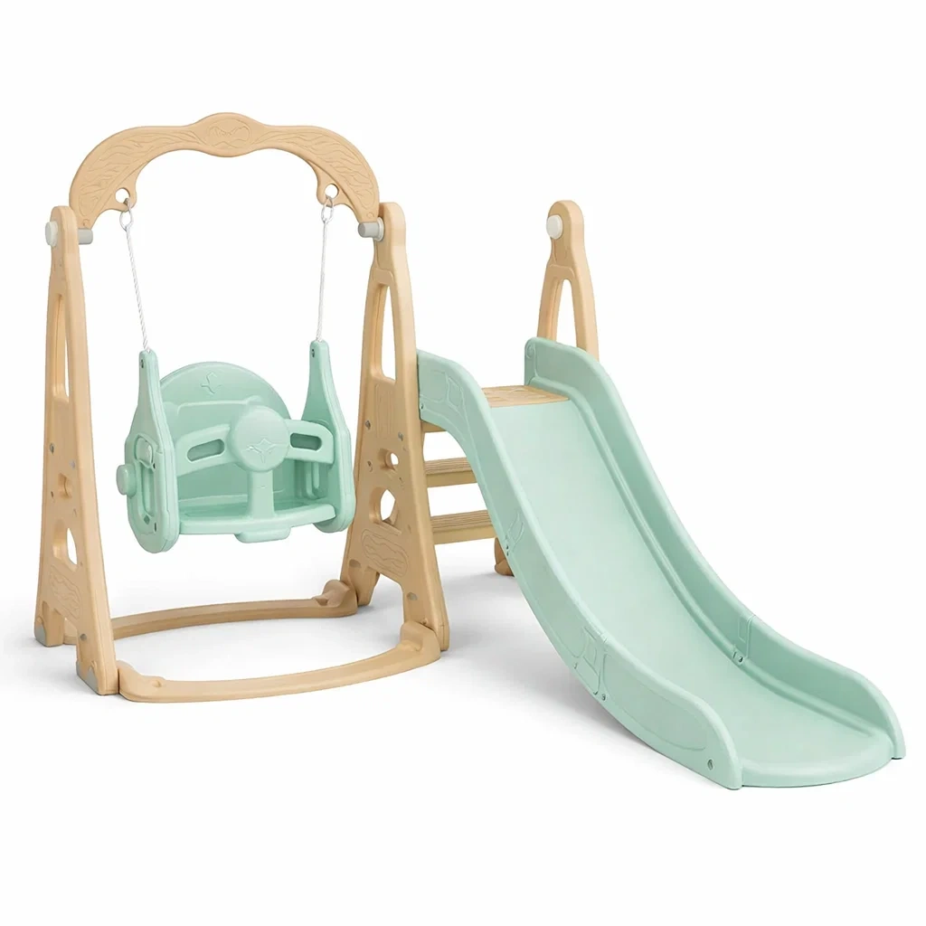 Attrezzatura da gioco per bambini con scivolo e altalena in plastica verde beige