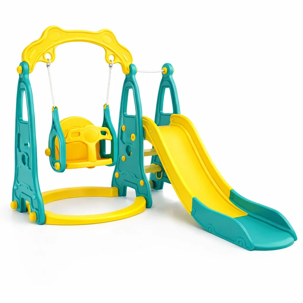 Attrezzatura da gioco per bambini con scivolo e altalena in plastica HDPE giallo verde