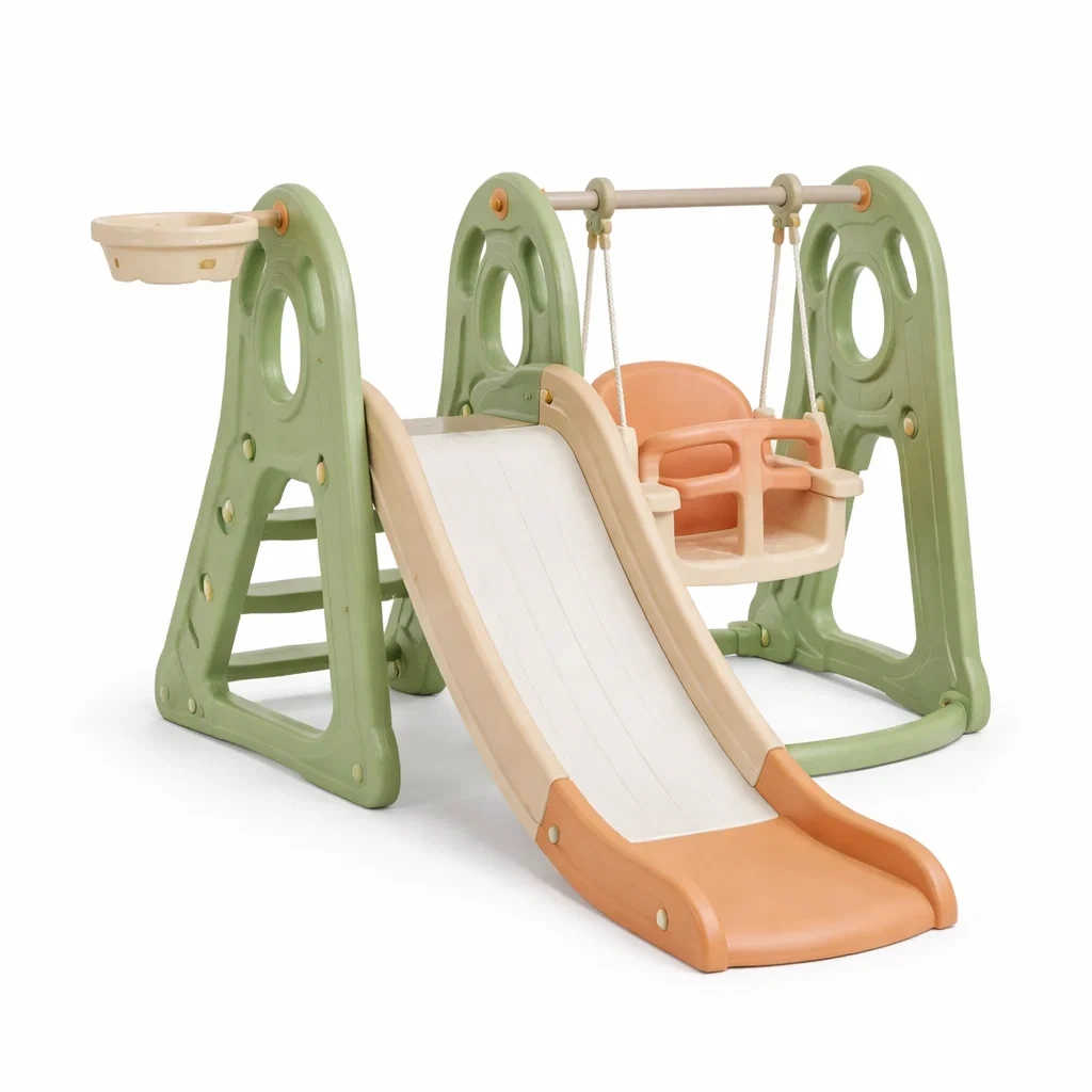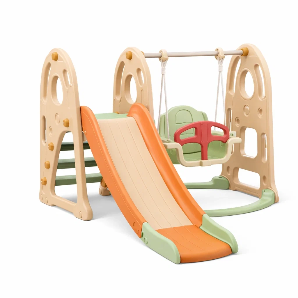 Attrezzatura da gioco per bambini con scivolo e altalena in plastica HDPE beige arancione verde
