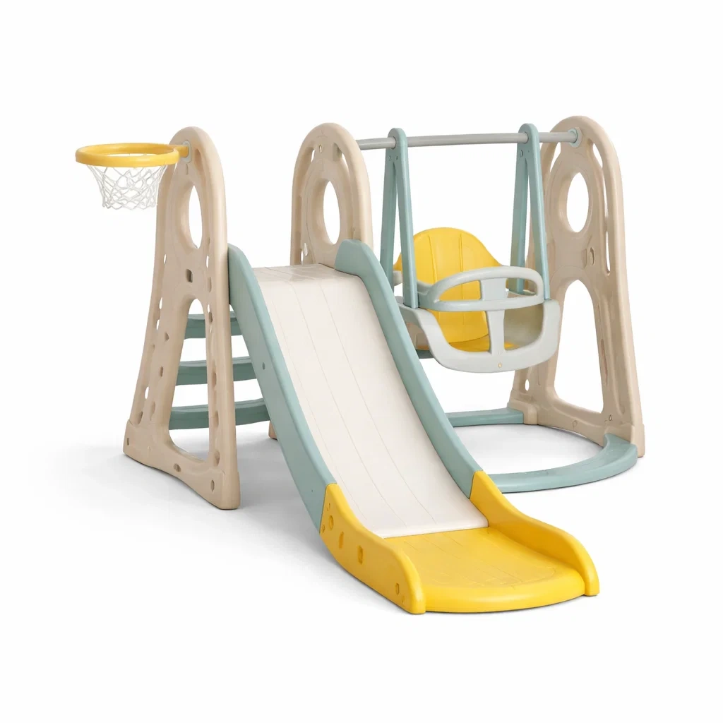 Attrezzatura da gioco per bambini con scivolo altalena e canestro in plastica