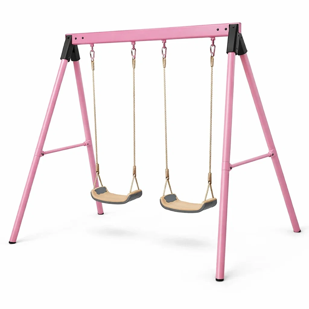 Set di altalena per bambini doppia in metallo rosa