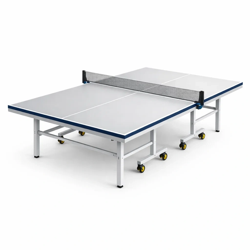 Il tavolo da ping pong pieghevole presenta una superficie realizzata in MDF spesso 18 mm e un robusto telaio in acciaio. Le dimensioni complessive sono 274 cm di lunghezza, 152.5 cm di larghezza e 76 cm di altezza.